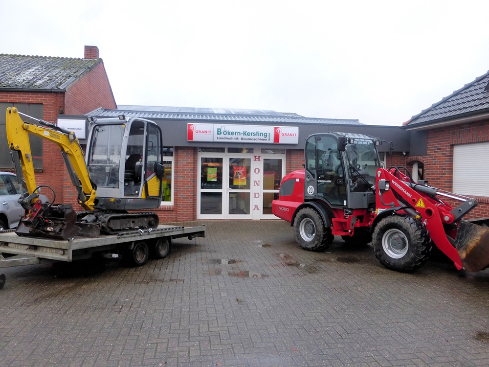 Die Firma Bokern-Kersting GmbH ist Fachhändler für Weidemann Baumaschinen, McCormick Landmaschinen, Minibagger der Firma ATLAS und Hilken Muldenkipper.